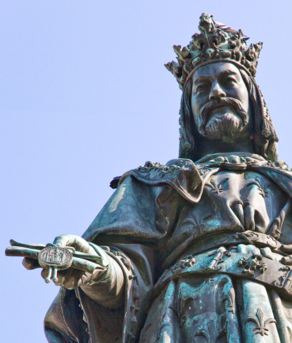 历史背景:这座1848年揭幕的群像纪念碑,以查理四世为中心,环绕着其治下波西米亚的学者、工匠与骑士。主雕像中的皇帝身着帝国礼服,右手平举指向布拉格城堡方向,左手握着《查理法典》——这部1356年颁布的宪法文件,确立了帝国选举君主制与波西米亚的特权地位。