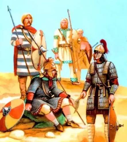 公元375年,匈人从亚洲草原席卷而来,东哥特人首当其冲。在老国王埃尔马纳里克的带领下,东哥特人奋起抵抗,却因实力悬殊而惨败,国王自杀,部族被迫臣服于匈人,成为其仆从军。西哥特人则选择向西迁徙,于376年向罗马帝国申请避难,获准渡过多瑙河,定居于默西亚与色雷斯地区。然而,罗马人对蛮族的残酷压榨——重税、欺凌甚至卖儿鬻女——最终引发了378年的亚得里亚堡战役。西哥特人在首领弗里迪盖伦的领导下,以骑兵冲锋击溃罗马军团,皇帝瓦伦斯战死,罗马帝国对边境的控制力自此崩塌。